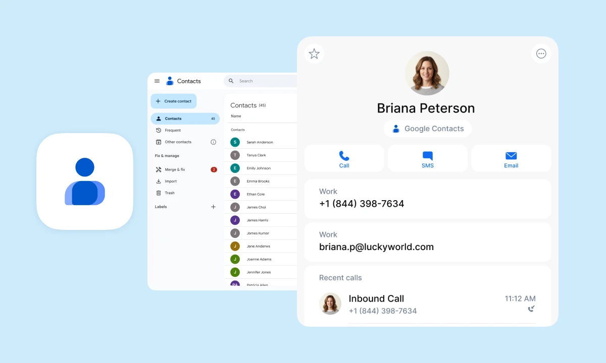 Keep all your business contacts in one place and eliminate manual data entry by syncing contacts from multiple Google accounts directly into DialLink. With this native integration, contact details such as names, profile photos, email addresses, and phone numbers are automatically kept up to date.
