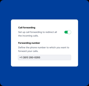 Call forwarding is a business phone system feature that redirects incoming calls from one business phone number to another destination, such as a personal number, another agent, or a different department. This ensures you never miss important calls, even when you're unavailable.