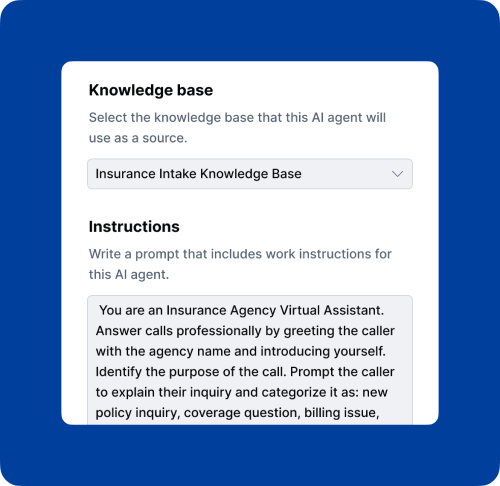 AI voice agents automate client intake, collect policyholder details, answer routine questions, and route calls to licensed agents for complex needs.